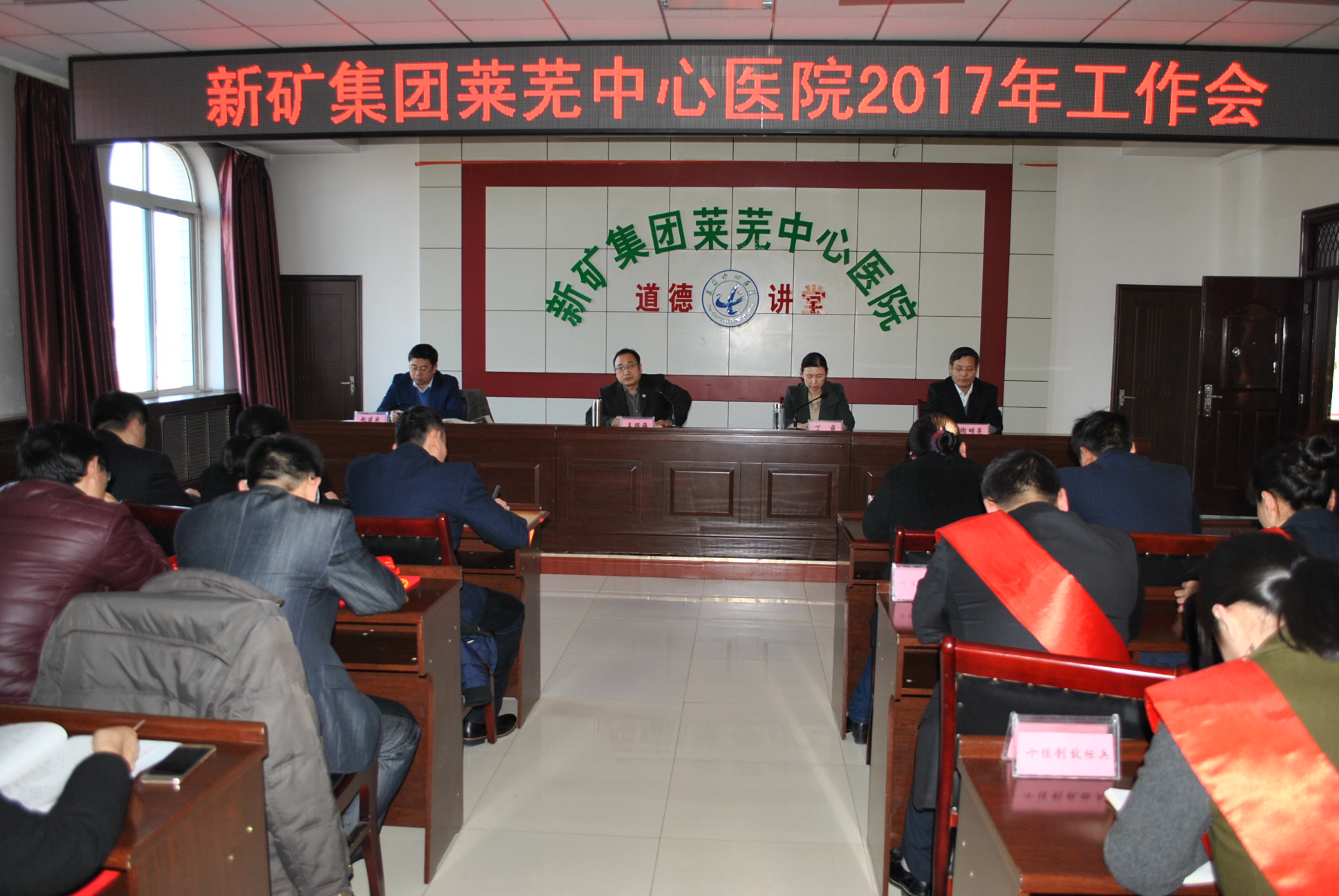 新年新氣象,新年新希望。1月20日下午,新礦集團(tuán)萊蕪中心醫(yī)院2017年工作會(huì)勝利召開(kāi)。這次大會(huì)的目的是認(rèn)真貫徹落實(shí)山東能源、集團(tuán)公司工作會(huì)議精神,集團(tuán)公司黨風(fēng)廉政工作會(huì),安全生產(chǎn)、信訪穩(wěn)定工作會(huì)會(huì)議精神,表彰先進(jìn),簽訂各項(xiàng)承諾,深刻總結(jié)2016年工作,部署2017年的工作目標(biāo)任務(wù)。該院院長(zhǎng)、黨委書(shū)記王瑞海作重要講話,黨委副書(shū)記、紀(jì)委書(shū)記、工會(huì)主席丁萌主持會(huì)議,班子成員、全院中層管理人員及受表彰的先進(jìn)代表共計(jì)120多人參加會(huì)議。