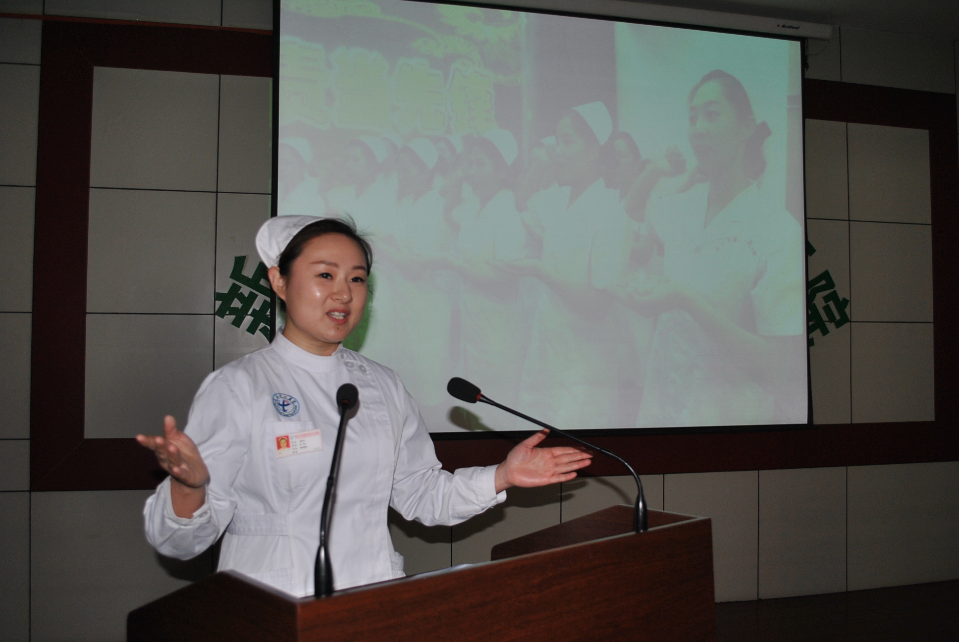 圖9:手術(shù)室胡娜演講《奉獻(xiàn)青春、點燃夢想》。