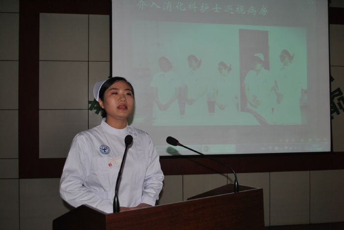 圖5:消化介入科段婷婷演講《愛崗敬業(yè)、青春無悔》。