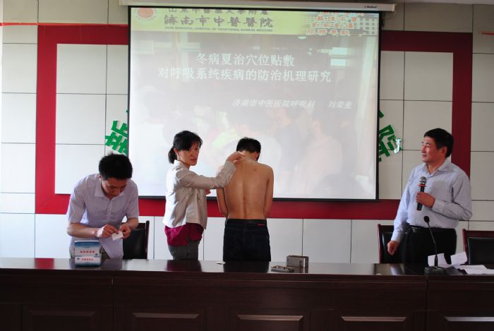 培訓現(xiàn)場,濟南市中醫(yī)醫(yī)院副院長、肺病科主任、慢性呼吸系統(tǒng)專家劉榮奎教授,濟南市中醫(yī)醫(yī)院兒科主任、碩士生導師崔文成教授針對冬病夏治---“三伏貼”貼敷要點和技巧進行了專業(yè)授課和現(xiàn)場示范,參訓人員聽得認真、記得仔細,不時為兩位中醫(yī)藥專家的精彩講解獻出掌聲,更被中國中醫(yī)藥文化的博大精深深深折服。