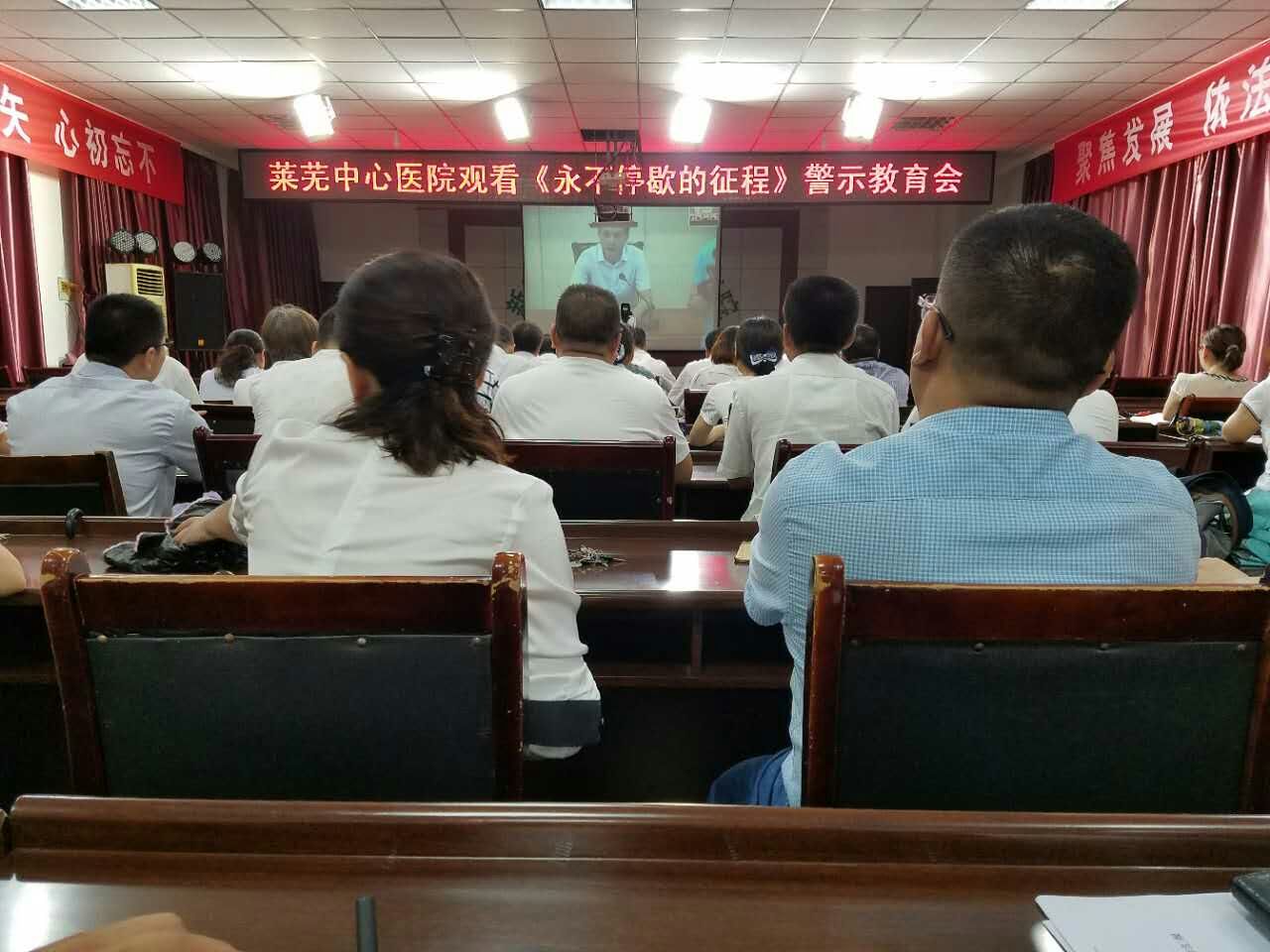 按照集團公司紀(jì)委《關(guān)于集中觀看<永不停歇的征程>警示教育專題片的通知》要求,7月18日上午,萊蕪中心醫(yī)院組織副科級以上管理人員、重點崗位人員在醫(yī)院五樓會議室集中觀看了《永不停歇的征程》警示教育專題片。