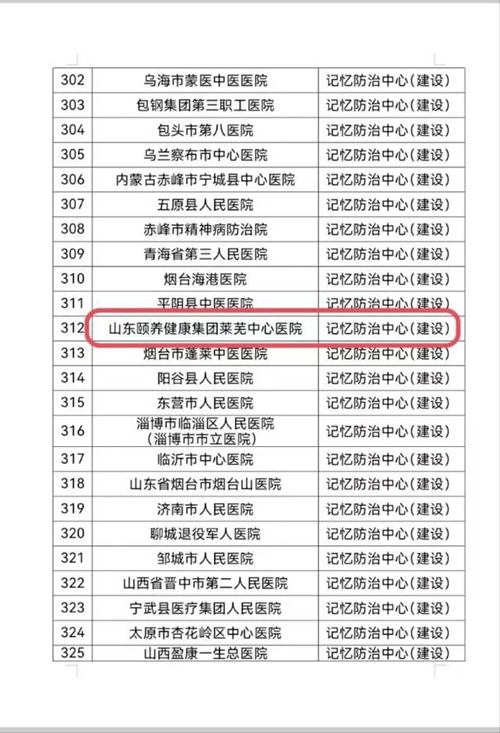 近日,國家衛(wèi)生健康委能力建設(shè)和繼續(xù)教育中心公布《關(guān)于2023年高級認(rèn)知障礙診療中心和記憶障礙防治中心遴選結(jié)果的通知》,萊蕪中心醫(yī)院成功入選記憶防治中心(建設(shè))。