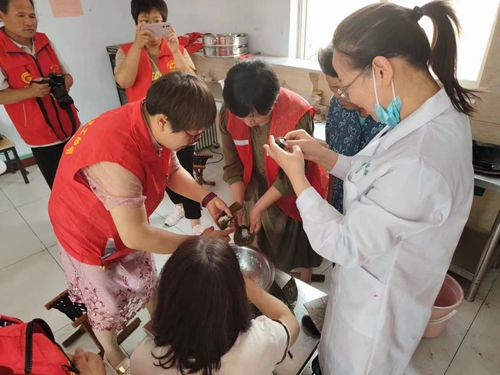 紅紅的大棗、白白的糯米、綠綠的粽葉,在醫(yī)護(hù)人員與鼎力社區(qū)工作人員和社區(qū)居民一雙雙靈巧的手中變成了清香四溢、形狀各異的粽子。大家一邊包粽子,一邊相互交流,活動(dòng)現(xiàn)場(chǎng)氣氛和諧。醫(yī)護(hù)人員將代表著吉祥和健康平安寓意的粽子送到老人家中,通過嘮家常了解老人的身體、飲食狀況和既往病史,介紹長(zhǎng)護(hù)險(xiǎn)政策和醫(yī)院服務(wù)方式、特點(diǎn)等,并將醫(yī)護(hù)人員姓名和聯(lián)系方式告知老人。
